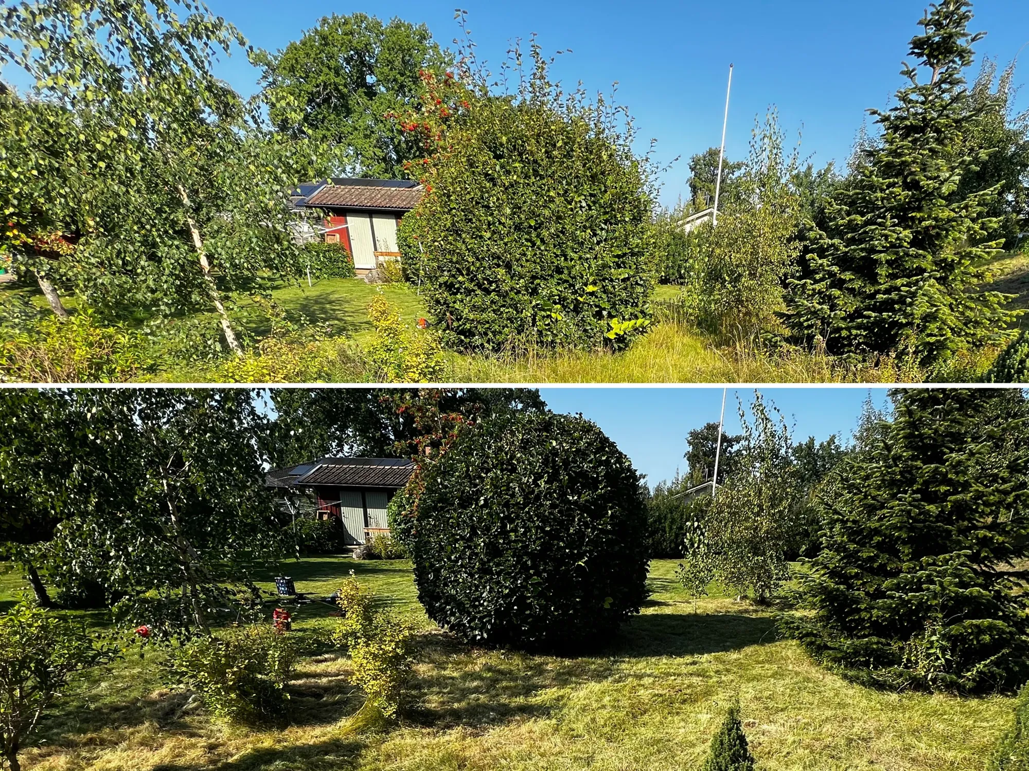 En nyklippt och välskött häck gör större skillnad än man tror. Den främjar en tätare tillväxt och ger en jämnare ljusfördelning.
